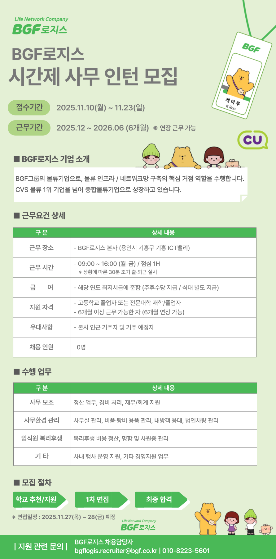[마감] 본사 시간제 사무인턴 모집
